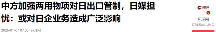 中方加强两用物项对日出口管制,日媒担忧:或对日企业务造成广泛影响-2026-01-07 07:06·环球网